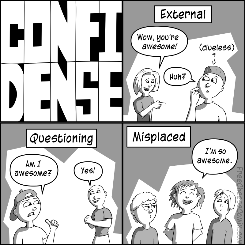 Yes I know “confidense” is misspelled and it’s actually “confidence” with a “c” this is, you see, a Pun, or a Play With Words.